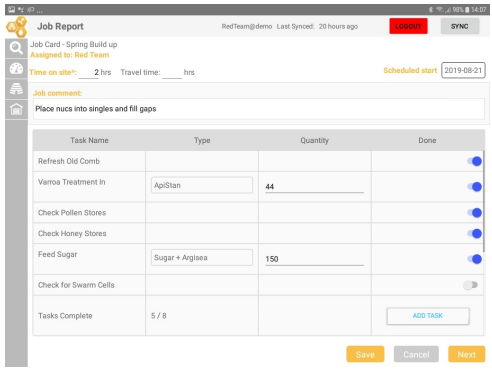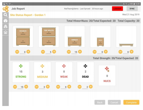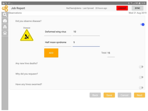 Note: The question ‘Why did you requeen?’ is linked to the job card task ‘Requeen’. The reasons total should match the number ended in the job card.