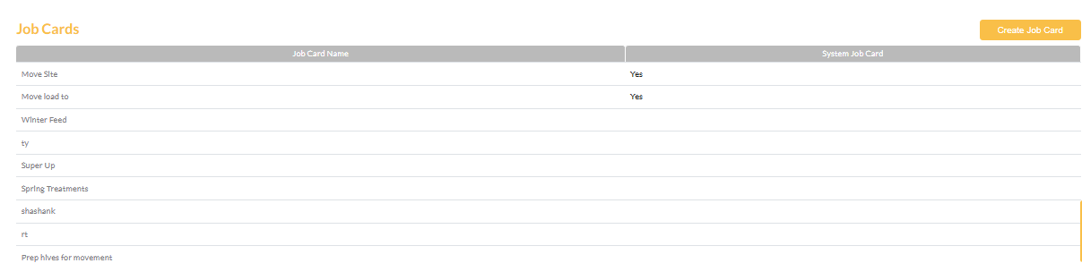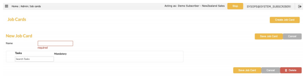 To create a new Job Card select the "Create Job Card" in the top right of the screen.