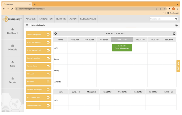 Once selected, you will see a page that has a calendar in the center and a list of jobs on the left of the screen as shown in the screenshot below. To schedule a job simply click the job you want to do and drag it to the day you want to complete it.